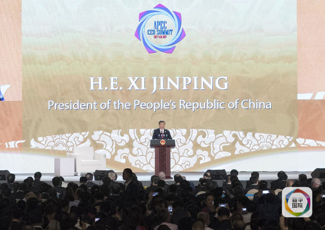 在APEC工商領(lǐng)導(dǎo)人峰會(huì)上發(fā)表主旨演講時(shí),習(xí)近平精辟闡述中國(guó)發(fā)展的前進(jìn)征程、深刻揭示中國(guó)發(fā)展的光明前景、鮮明指出中國(guó)發(fā)展的和平本質(zhì)、充分展現(xiàn)中國(guó)發(fā)展的世界意義,闡釋中國(guó)發(fā)展道路。