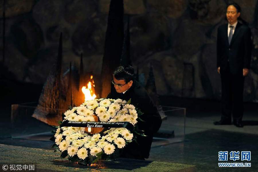 日本外相訪問耶路撒冷 在大屠殺紀(jì)念館鞠躬悼念死難者