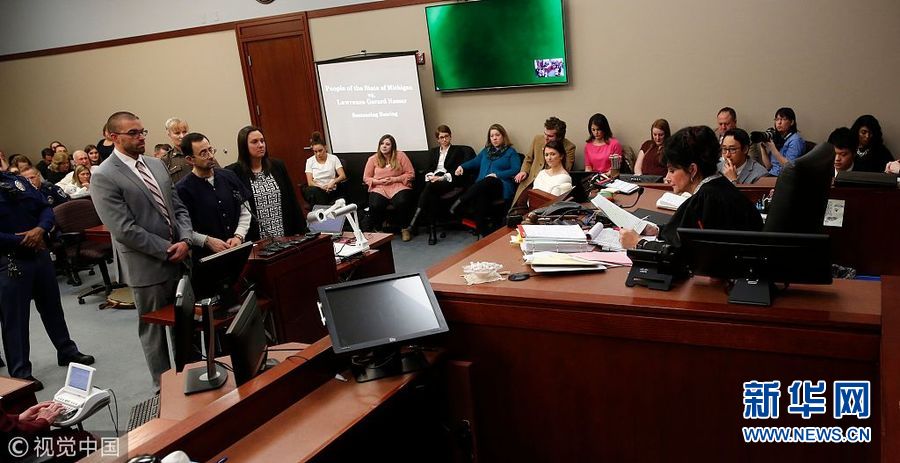 1月24日,美國(guó)密歇根州蘭辛,美國(guó)奧運(yùn)體操隊(duì)前隊(duì)醫(yī)拉里·納沙因性侵被判處40-175年監(jiān)禁。過(guò)去7天,超過(guò)150名女性向法官證實(shí),自己曾是納沙的性侵對(duì)象,其中包括多名兒童。在法院宣讀的一份聲明中,納沙表示自己對(duì)受害者的歉意已“超出言語(yǔ)的表達(dá)范圍”。54歲的納沙1996年至2015年間在美國(guó)體操協(xié)會(huì)擔(dān)任醫(yī)師。(圖片來(lái)源:視覺(jué)中國(guó))