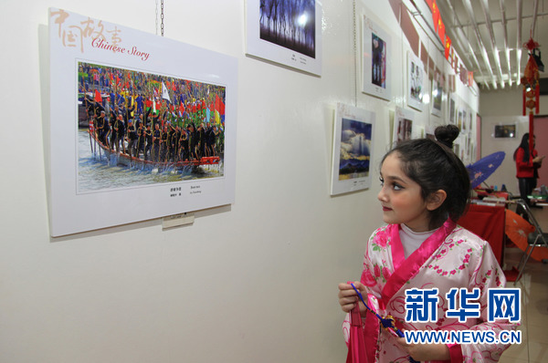 一名學(xué)生在欣賞“中國故事”圖片展。新華網(wǎng)發(fā)(李良勇攝)