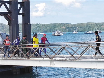 7月6日,泰國(guó)普吉島查龍碼頭,救援車輛停靠在碼頭等待。 通訊員 卜志輝 攝