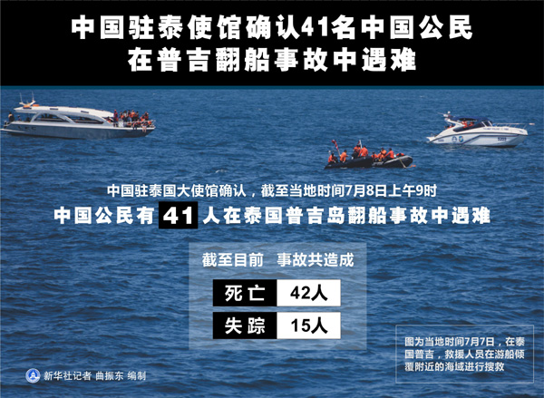圖表:中國駐泰使館確認41名中國公民在普吉翻船事故中遇難 新華社記者 曲振東 編制