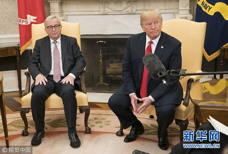 2018年7月25日,美國華盛頓,美國總統(tǒng)特朗普與歐盟委員會(huì)主席容克會(huì)面。(圖片來源:視覺中國)
