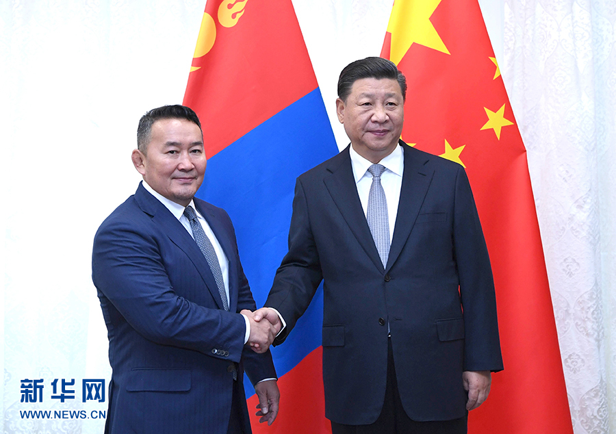 習近平指出,中方始終高度重視中蒙關系,將按照親誠惠容理念和與鄰為善、以鄰為伴方針,同蒙方加強交流合作,不斷推動中蒙全面戰(zhàn)略伙伴關系更好更快發(fā)展。雙方要加強對兩國關系的政治引領,從戰(zhàn)略高度和長遠角度把握好兩國關系發(fā)展正確方向。要相互理解和尊重彼此核心利益,深化彼此互信。中方尊重蒙古國獨立、主權、領土完整,尊重蒙古國人民自主選擇的發(fā)展道路。雙方要繼續(xù)大力推動“一帶一路”同“發(fā)展之路”對接,發(fā)揮好大項目對兩國務實合作的帶動和引領作用,積極支持兩國邊境毗鄰地區(qū)擴大交流合作。中方歡迎蒙方搭乘中國發(fā)展快車,分享中國改革開放成果,實現(xiàn)自身高質(zhì)量發(fā)展。中方也支持蒙古國發(fā)展畜牧業(yè)和加工業(yè),從蒙古國進口更多優(yōu)質(zhì)農(nóng)牧產(chǎn)品。雙方要促進人文交流,夯實兩國關系的民意和社會基礎。雙方要加強在國際和地區(qū)事務中的溝通協(xié)調(diào),協(xié)力推進區(qū)域合作。