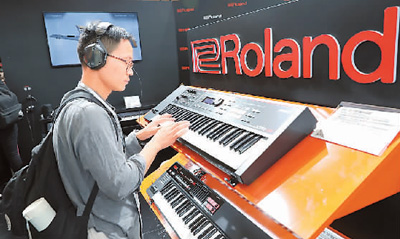 在首屆國際進(jìn)博會上,樂器將是很多人關(guān)注的焦點(diǎn)。圖為一名中國消費(fèi)者在試用新產(chǎn)品。新華社記者 方 喆攝