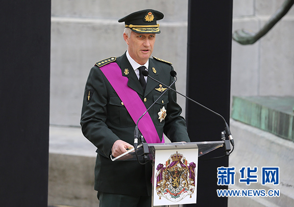 11月11日,在比利時(shí)首都布魯塞爾無名戰(zhàn)士廣場(chǎng),比利時(shí)國(guó)王菲利普發(fā)表講話。新華社記者 葉平凡 攝