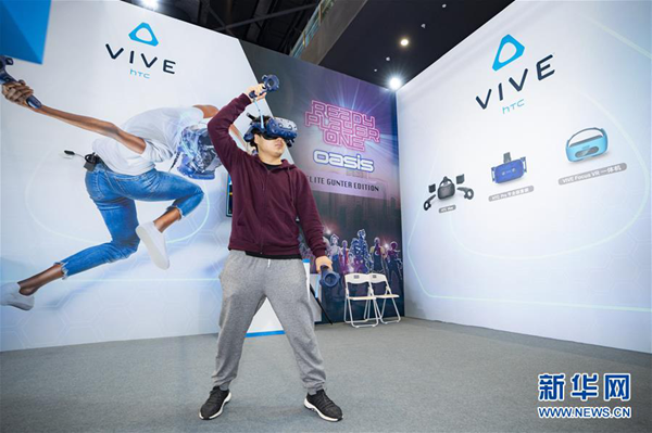11月7日,參觀者在第五屆世界互聯(lián)網(wǎng)大會上體驗虛擬現(xiàn)實技術(shù)。當日,第五屆世界互聯(lián)網(wǎng)大會在浙江烏鎮(zhèn)開幕。 新華社記者 才揚 攝