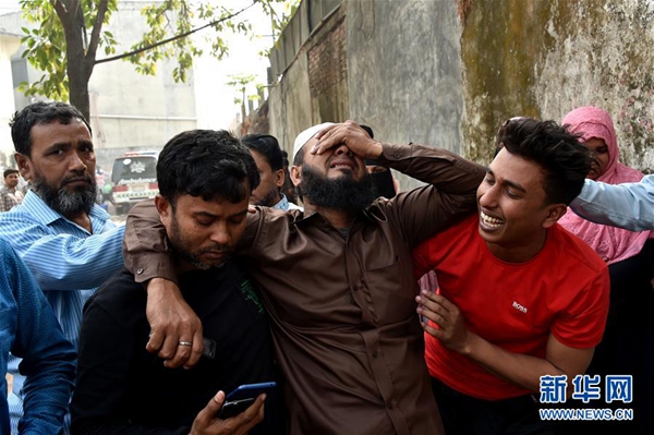 2月21日,在孟加拉國首都達卡,火災遇難者的家屬在醫(yī)院內(nèi)慟哭。新華社發(fā)