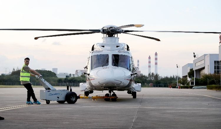 作為首屆中國(guó)國(guó)際進(jìn)口博覽會(huì)上的展品,意大利萊奧納多直升機(jī)公司AW189直升機(jī)入駐智能及高端裝備展區(qū)。(新華社記者方喆攝)