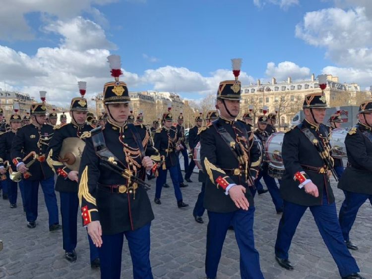 凱旋門星形廣場上,儀仗隊和軍樂團(tuán)整齊列隊,靜候習(xí)近平主席的到來。新華社記者 高潔 攝
