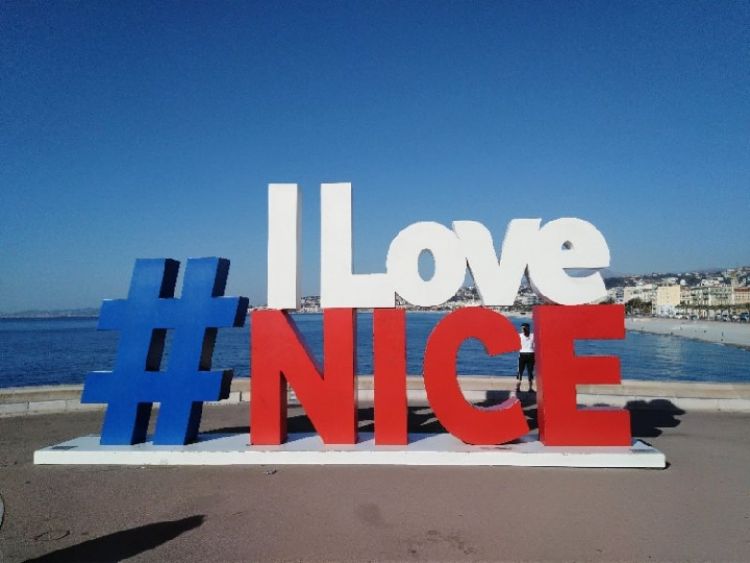 尼斯在恐怖襲擊重創(chuàng)后豎起“我愛尼斯”的標(biāo)志。2016年7月15日,習(xí)近平就尼斯恐襲事件向時任法國總統(tǒng)奧朗德致慰問電。新華社記者 饒愛民 攝