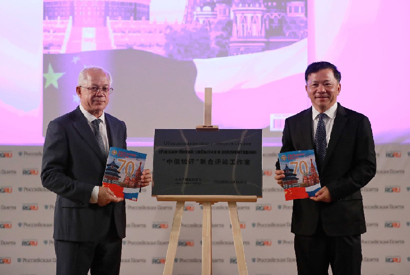 6月5日,由中央廣播電視總臺(tái)與俄羅斯政府機(jī)關(guān)報(bào)《俄羅斯報(bào)》共同打造的“中俄銳評(píng)”聯(lián)合評(píng)論工作室揭牌儀式在莫斯科舉行。中宣部副部長(zhǎng)、中央廣播電視總臺(tái)臺(tái)長(zhǎng)慎海雄,俄羅斯報(bào)社長(zhǎng)涅戈伊察出席儀式,并共同為“中俄銳評(píng)”聯(lián)合評(píng)論工作室揭牌。