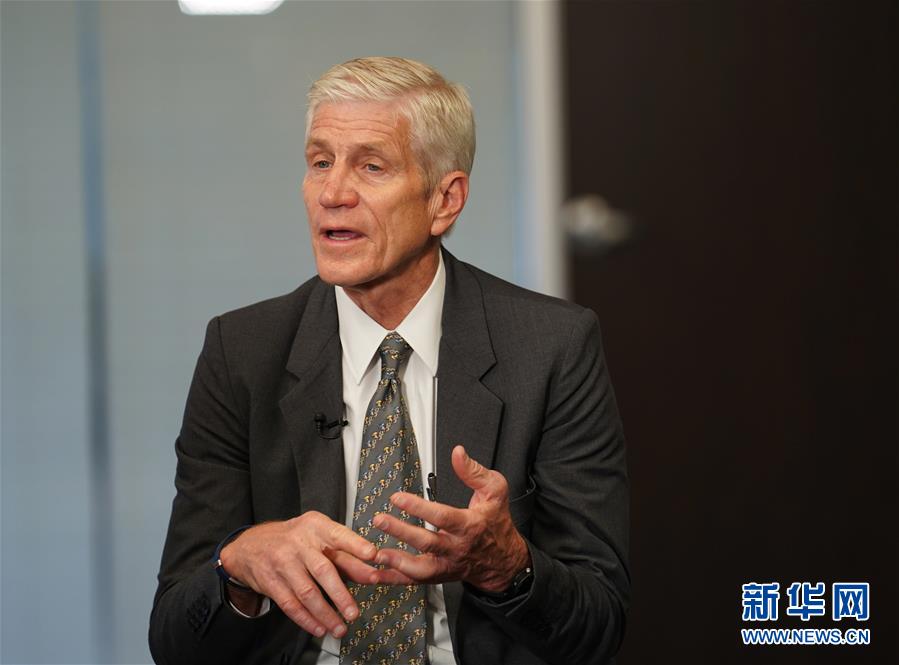 2019年6月6日,在美國(guó)新澤西州帕西帕尼,美國(guó)自行車制造企業(yè)肯特集團(tuán)執(zhí)行總裁阿諾德·卡姆勒接受采訪。新華社記者 劉杰 攝