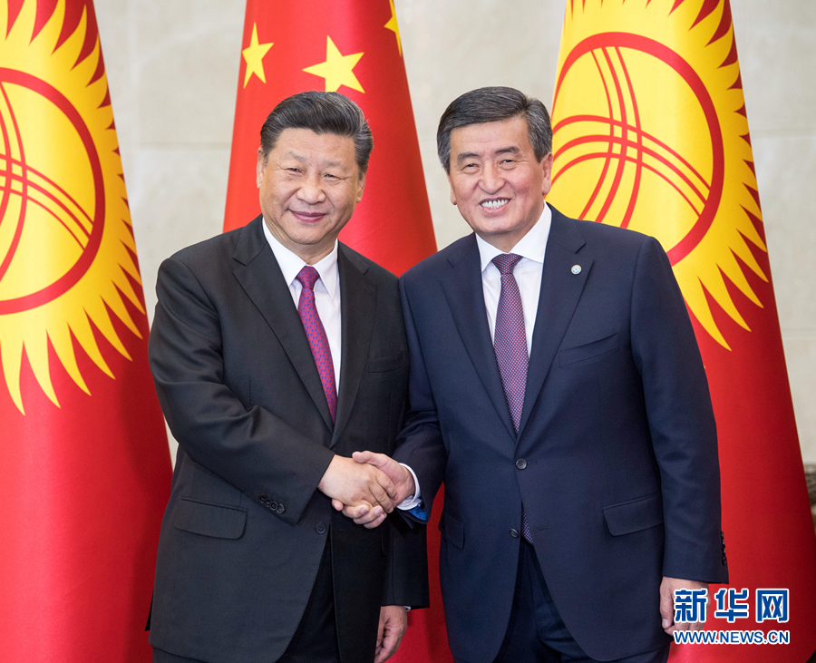 6月13日,國家主席習近平在比什凱克同吉爾吉斯斯坦總統(tǒng)熱恩別科夫會談。 新華社記者 李學仁 攝