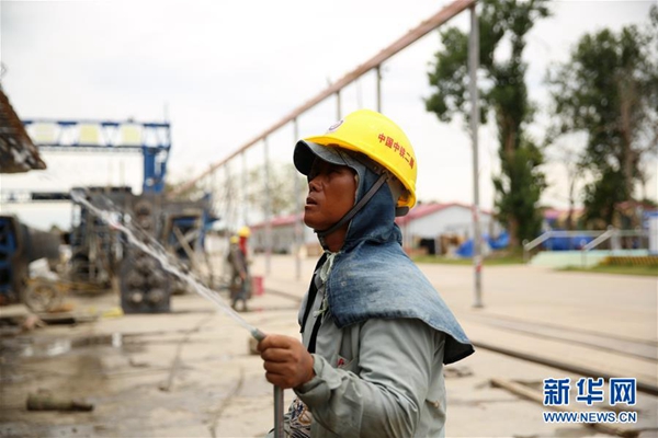 和普塔灣一樣,38歲的帕利也在受災(zāi)后隨中鐵二局到了萬象制梁場。“剛來的時候先做簡單的清掃工作,后來中國師傅教會了我們更復(fù)雜的工作。我現(xiàn)在主要負責(zé)澆筑混凝土和澆筑橋梁?!迸晾麑τ浾哒f。