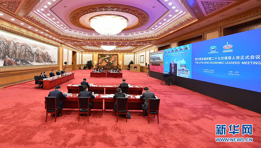 11月20日晚,國(guó)家主席習(xí)近平在北京以視頻方式出席亞太經(jīng)合組織第二十七次領(lǐng)導(dǎo)人非正式會(huì)議并發(fā)表重要講話。 新華社記者 王曄 攝