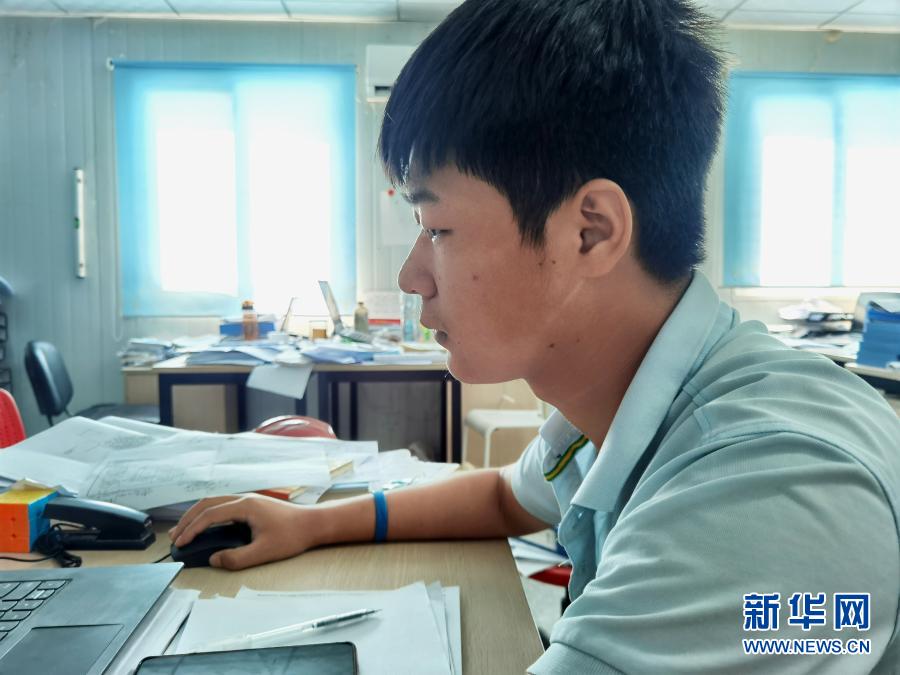 劉平建經(jīng)常在工地辦公,在回到營地摘下口罩擦汗的一瞬間,記者注意到,由于長期佩戴口罩暴露在烈日之下,他的臉上已經(jīng)留下一道鮮明的口罩印。