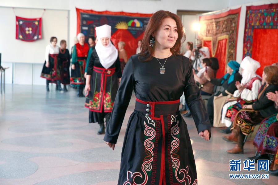 當日,吉爾吉斯斯坦首都比什凱克的國家美術館內舉行傳統(tǒng)手工藝品比賽,其中裙袍大賽引人關注。裙袍是吉爾吉斯族的傳統(tǒng)服飾,它看起來像一條擺裙,一般穿在連衣裙或背心外面。裙袍的剪裁、顏色和圖案能夠反映女性的地位和狀況。