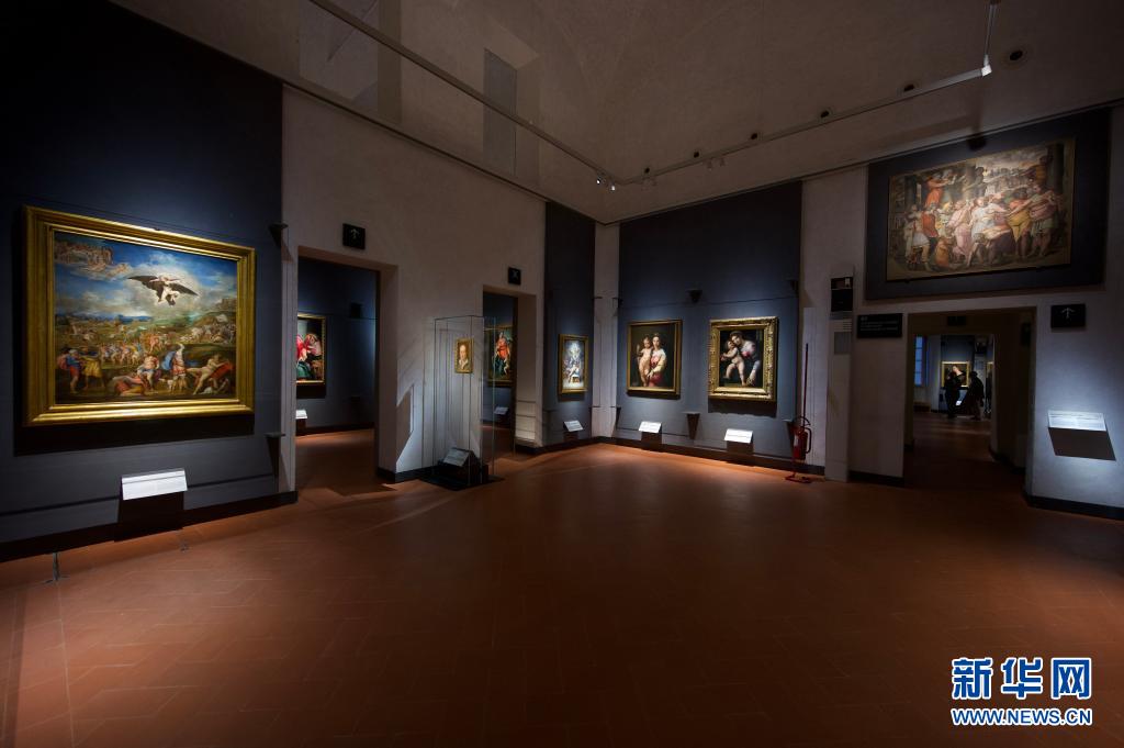 這是5月4日在意大利佛羅倫薩拍攝的烏菲齊美術(shù)館內(nèi)的展室。當(dāng)日,意大利烏菲齊美術(shù)館重新開放。美術(shù)館改建了售票處和接待處,以避免排隊(duì),并開設(shè)了十四個(gè)新展室。新華社發(fā)