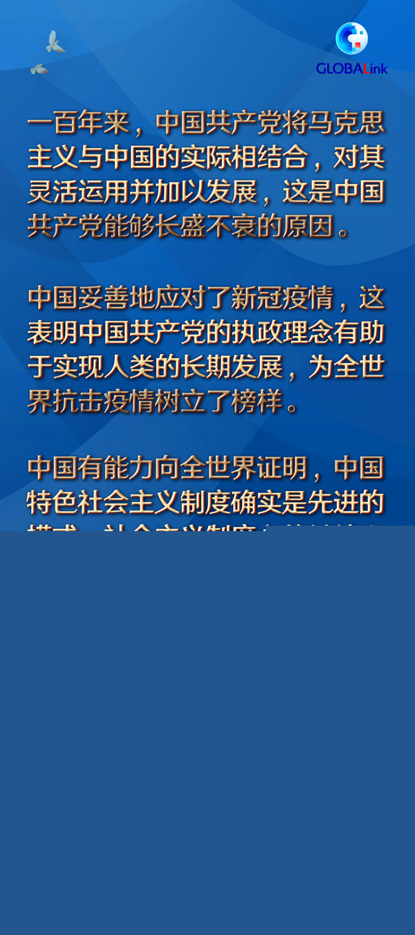 在祝賀中國(guó)共產(chǎn)黨成立100周年的同時(shí),索科爾也希冀中國(guó)繼續(xù)發(fā)展,中國(guó)人民在中國(guó)共產(chǎn)黨的領(lǐng)導(dǎo)下取得更大成就。他相信,中國(guó)有能力向全世界證明,中國(guó)特色社會(huì)主義制度確實(shí)是先進(jìn)的模式,社會(huì)主義制度必將繼續(xù)興盛。