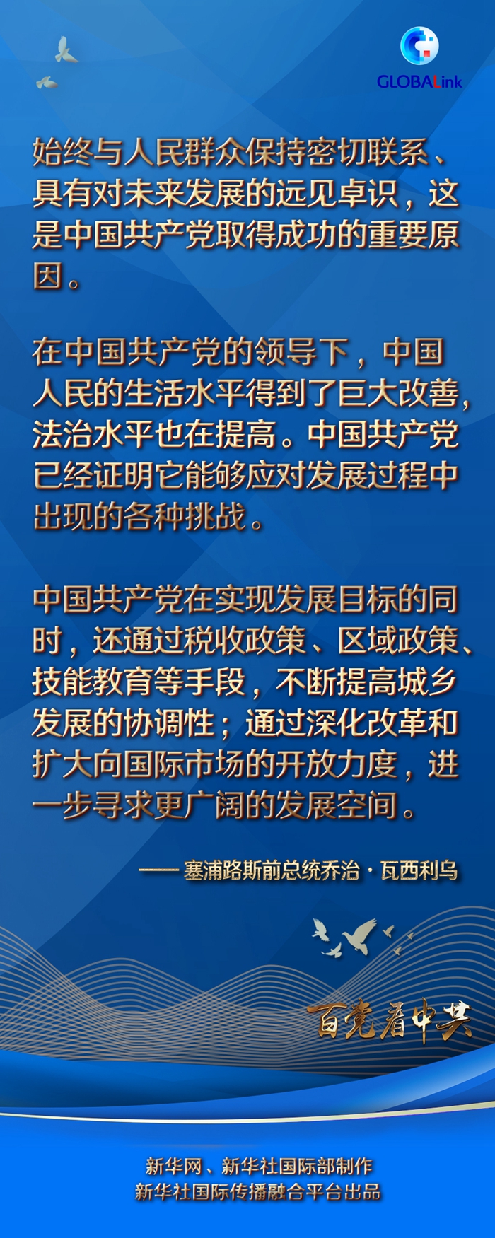 瓦西利烏認為,始終與人民群眾保持密切聯(lián)系、具有對未來發(fā)展的遠見卓識,這是中國共產(chǎn)黨取得成功的重要原因。他表示,中國共產(chǎn)黨有能力制定最適合國情的政策,同時有效地與腐敗現(xiàn)象作斗爭,帶領(lǐng)國家不斷前進。